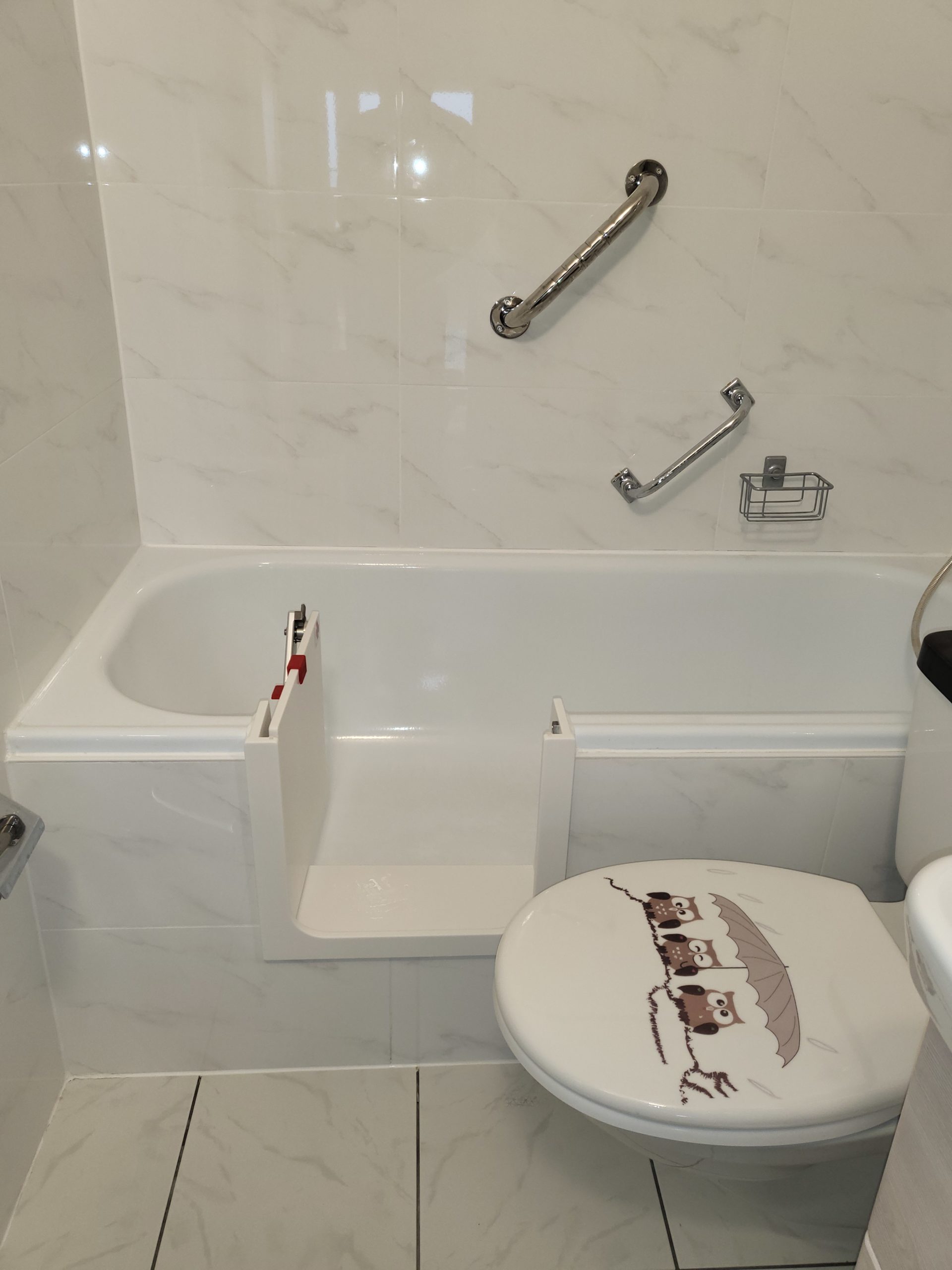 Nous sommes satisfaits de cette option permettant un accès facilité dans la baignoire. Tant dans la durée des travaux que l’aspect financier, nous avons apprécié le soin apporté au lieu après le « mini chantier ». Personnel très sympathique !